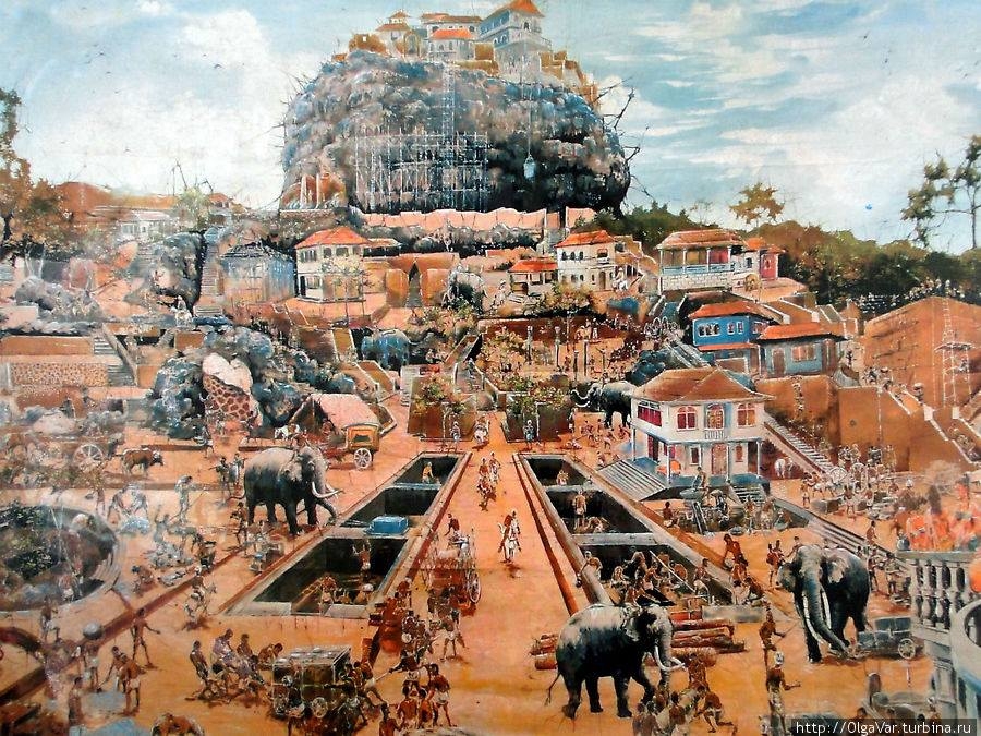 Дійсно, про виникнення Сігірії ходить безліч легенд. Найпоширеніша свідчить, що у V столітті король Датусена передав трон молодшому синові Могаллане. Старший син на ім’я Касапа був розгніваний таким рішенням і заточив батька у в’язницю, а потім і зовсім убив, завоювавши престол і побудувавши собі палац на вершині скелі. Він оточений безліччю садів і водойм. До речі, в перекладі з сингальської Сігірія означає “левова скеля”.
